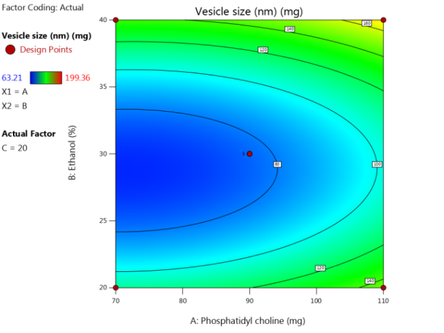 | Phosphatidylcholine (mg) | 90.07 | Vesicle size (nm) | 103.19 | 102.91 |