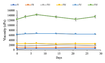 Fig. 2: The result of viscosity measurement of GS extract gel after 28-day storage (All the results were calculated as mean±standard deviation; n=3)