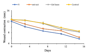 Fig. 3: The result of wound contraction of GS extract gel after 15 d (All the results were calculated as mean±standard deviation; n=3)