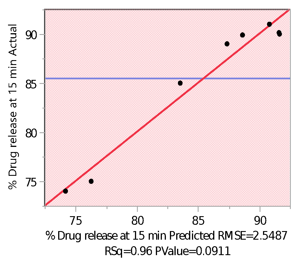 | Drug release at 15 min | >80% | Yes | Faster the release of drug from the formulation, earlier the onset of action |