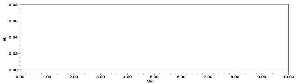 In this test method placebo, sample and standard solutions were analyzed individually to examine the interference. The below fig. shows that the active ingredients were well separated from blank and their excipients and there was no interference of placebo with the principal peak. Hence the method is specific.