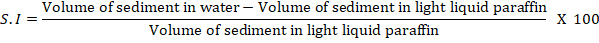 Starch malonate (200 mg) was added to 10 ml of water, and light liquid paraffin in two different measuring cylinders and mixed. The dispersion in the tubes was allowed to stand for 12 h. The volumes of the sediment in the cylinders were recorded. The swelling index of the material was calculated as follows [8].