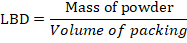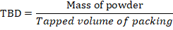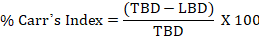 Where, TBD = Tapped bulk density; LBD = Loose bulk density.