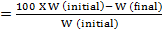 The tissue paper was folded twice as per the diameter of the petri dish and 6 ml of water was added to the petri dish. A tablet was kept on the tissue paper and allowed to wet thoroughly and the wetted tablet was weighed. Water absorption ratio was calculated by using the given Equation: