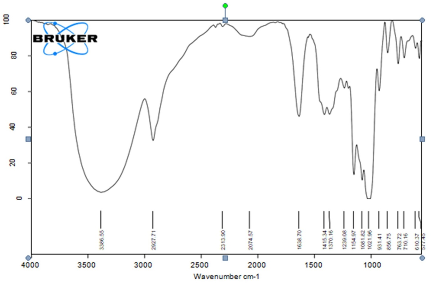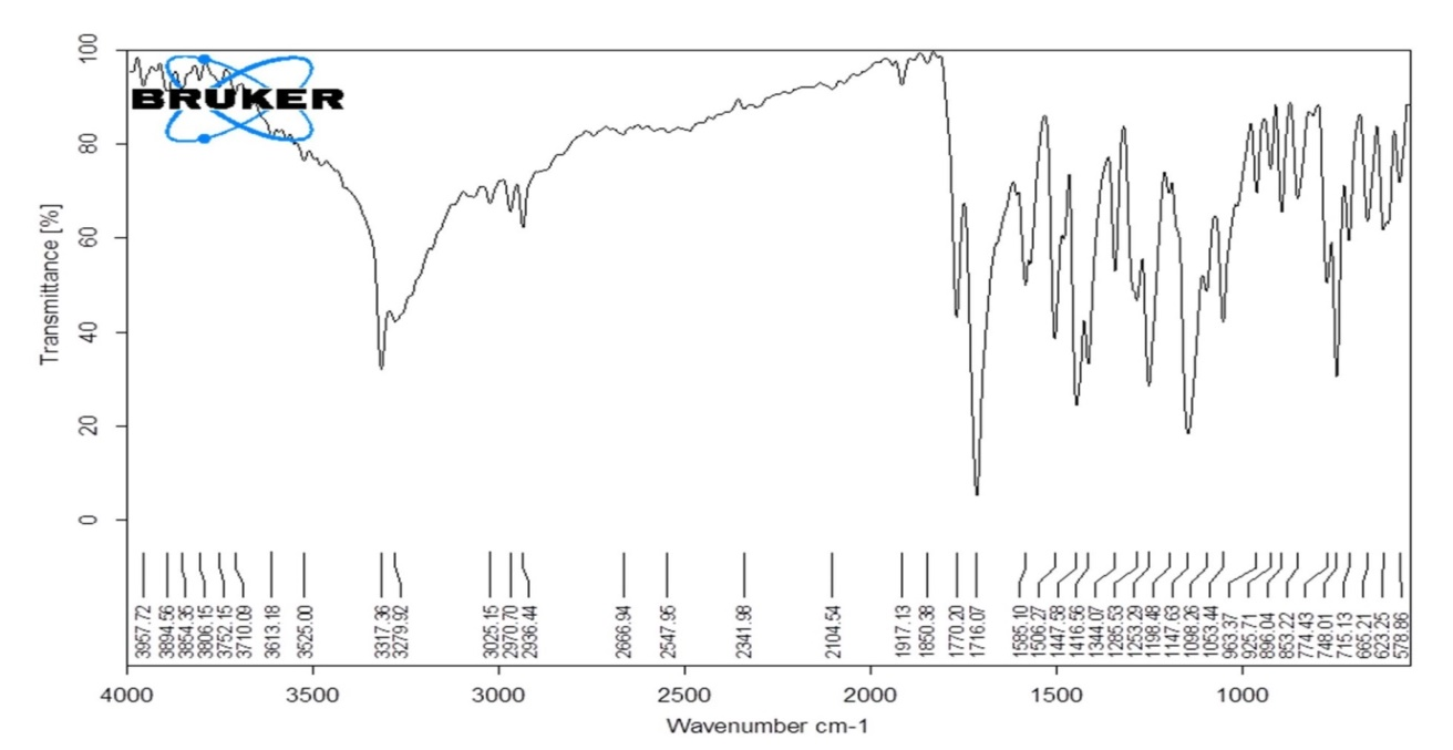 FTIR spectra of starch malonate recorded on samples prepared in potassium bromide (KBr) disks using a BRUKER FT–IR, (Tokyo, Japan). KBr disks of samples were made at 6-8 tons hydrostatic press and analyzed sample between scanning range 500 to 4000 cm-1.