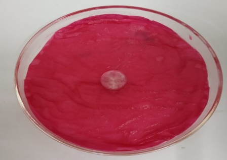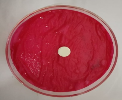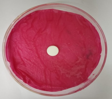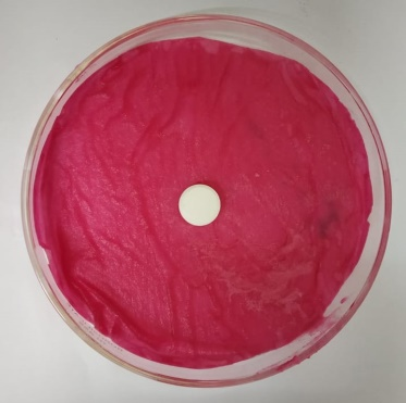 Five pieces of circular tissue paper were placed in Petri plate having 10 cm diameter. Ten ml of water containing a water-soluble dye (amaranth) was added to the petri dish. Carefully one tablet was kept in the petri plate in and the time taken by colored water to reach the upper surface of the tablet was noted as wetting time [10].