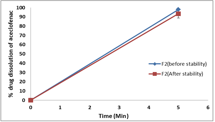Fig. 21: Dissolution profiles of optimized formulation F2 before and after storage for 6 mo