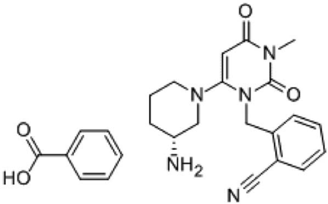 Alogliptin gained approval for the first time in 2010 in Japan for the treatment of type 2 diabetes mellitus (T2DM). It is a short-acting dipeptidyl peptidase-4 (DPP-4) inhibitor that works by inhibiting the DPP-4 enzyme to extend the plasma level of glucagon-like peptide-1 (GLP-1) [1]. Alogliptin benzoate has a short half-life of 1-2 h; therefore, it can be given twice a day [2].