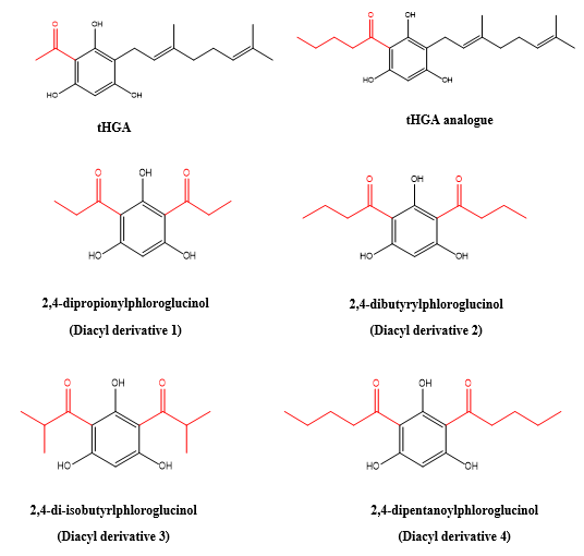 Fig. 1: Chemical structures for designed derivatives, tHGA and its most active analogue
