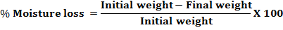 Percentage moisture loss