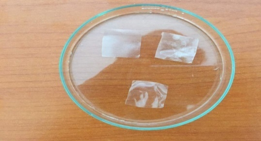 A small strip of film was cut evenly and separately folded at the same place until it broke. The number of times the film could be folded at the same place without breaking gives the folding endurance [16].