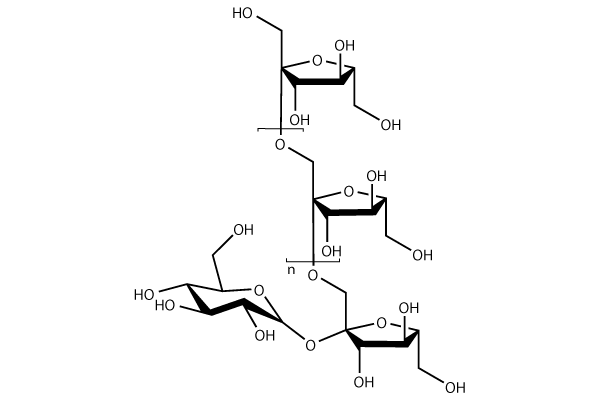 Inulin is a polydisperse β-(2-1) fructan. It is made up of residues of β-D-fructose bound together by glycosidic bonds [4]. At the end of each fructose chain, a glucose molecule is linked by α-D-glucopyranosyl or α-(1→2) bond, similar to sucrose [5]. Inulin is indigestible in the human small intestine due to β-configuration of anomeric carbon, however, can be fermented by the intestinal microflora in the large intestine. Its β-(2-1) bonds are a special feature of the structure of inulin. These linkages inhibit the digestion of inulin like a standard carbohydrate and are responsible for its decreased caloric value and benefits of dietary fiber. The number of fructose units in chicory inulin ranges from 2 to 60, representing a mixture of oligomers and polymers.