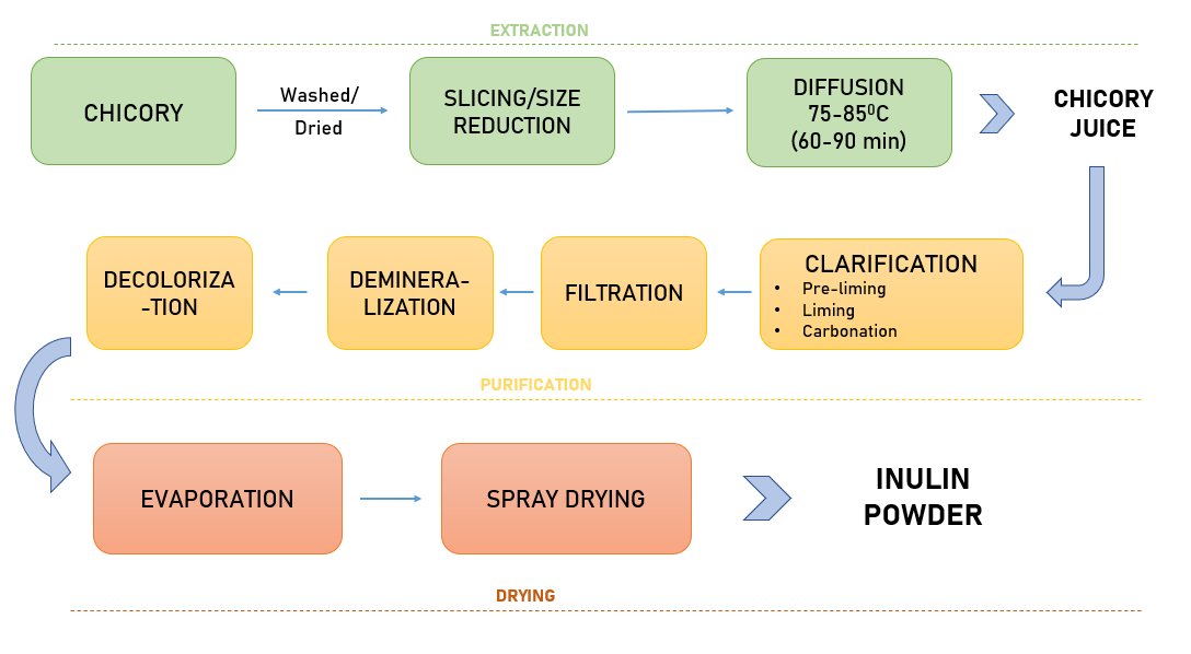 Fig. 3: Extraction of inulin powder from chicory [12]