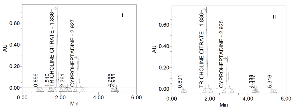 Objective: This investigation demonstrates a stability-indicating and reliable “high-performance liquid chromatography” method to simultaneously quantify tricholine citrate (TEC) and cyproheptadine (CRH) in the syrup form and bulk form.