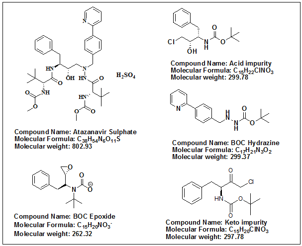 Fig. 1: Chemical structures of atazanavir sulfate and its genotoxic impurities