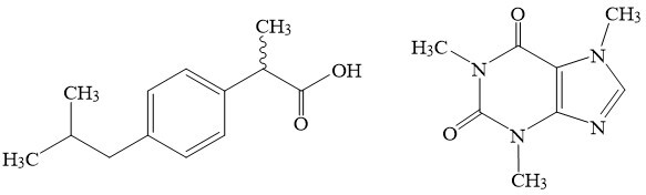 Fig. 1: Chemical structures of ibuprofen (left) and caffeine (right)