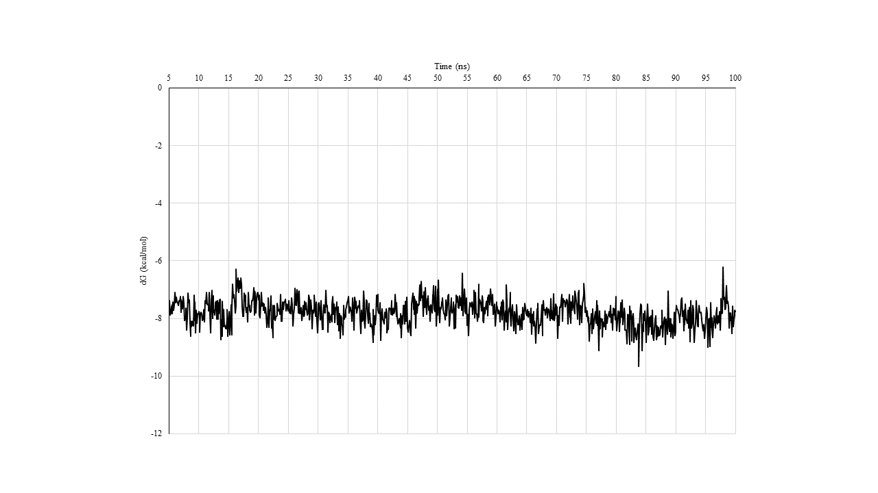 Fig. 2: The free energy of binding (kcal/mol) vs time (ns) graph