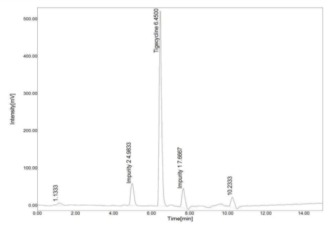 To develop a High-Pressure Liquid Chromatographic method for the estimation of Tigecycline with impurities, isocratic PEAK HPLC instrument with Agilent ZORBAX Eclipse XDB C18(250 mm × 4.6 mm, 5 μm id) column, gradient pump (LC 20AT), programmable UV-detector (LC–7000) and the dyne type inject port (20μl capacity) and PEAK software for data analysis.