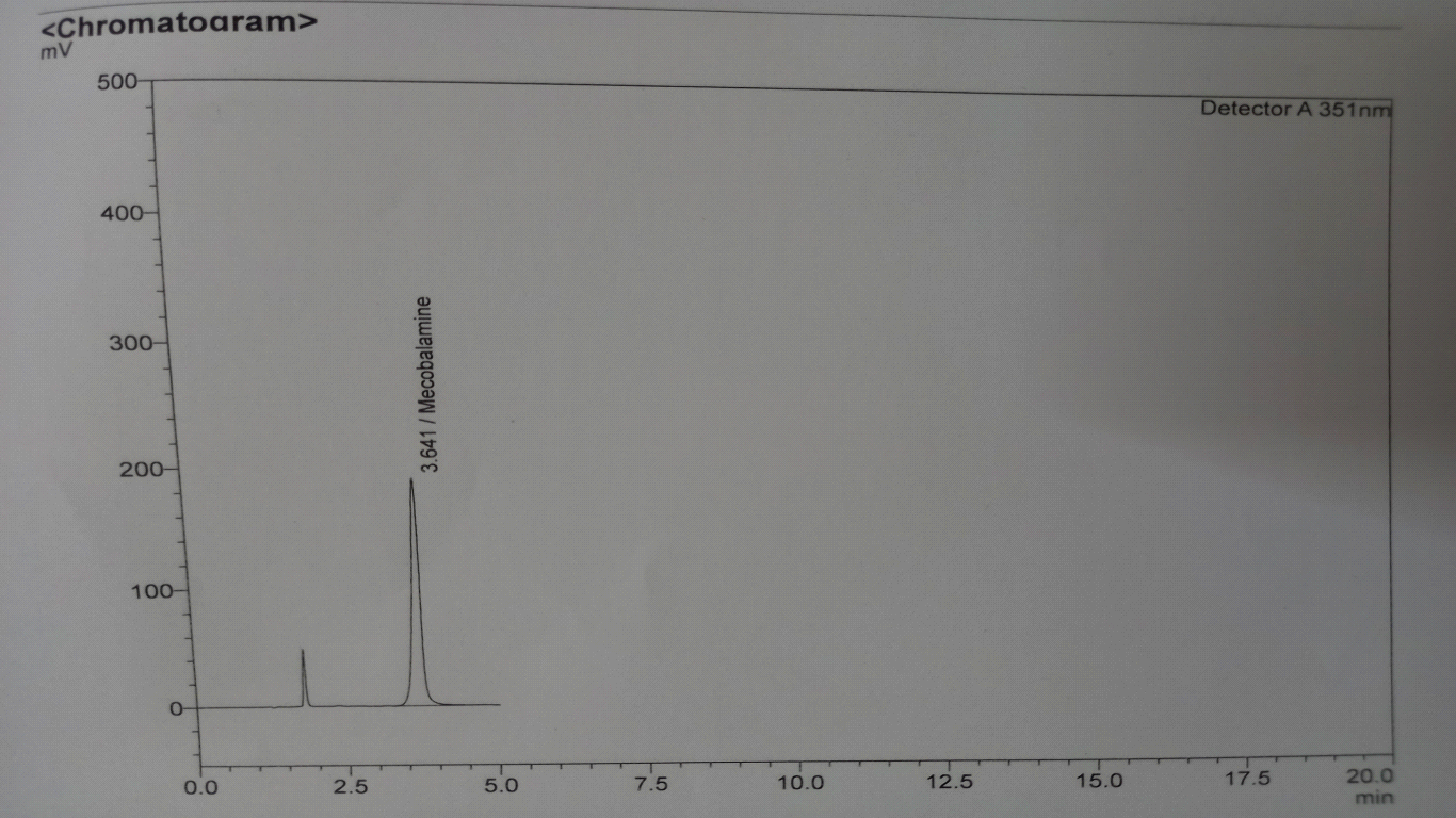 Because of the tremendous light sensitiveness of Methylcobalamin, the model solution and reference solution ought to be synthesized in a dark room. Cover the glass equipment used tightly in aluminium foil; darken the sample compartment of the autosampler with black paper.