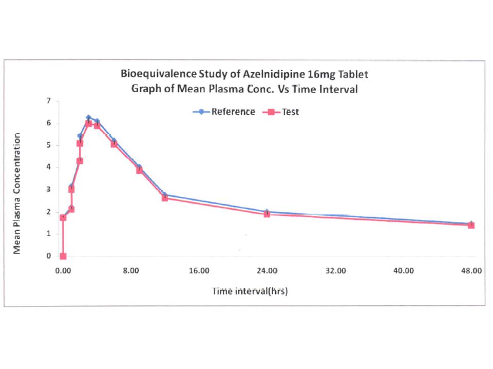 Both formulations are well-tolerated following a single dose administration of the investigational product. No clinical severe adverse events causing dropouts, hospitalization, disability, or death, of the subjects, were encountered. So, the test product is bioequivalence to the reference product of Azelnidipine 16 mg. No occurrence of adverse events during the study.