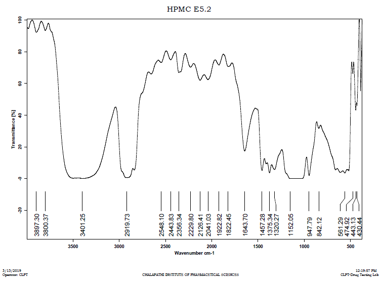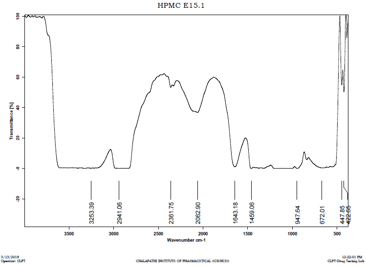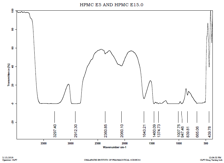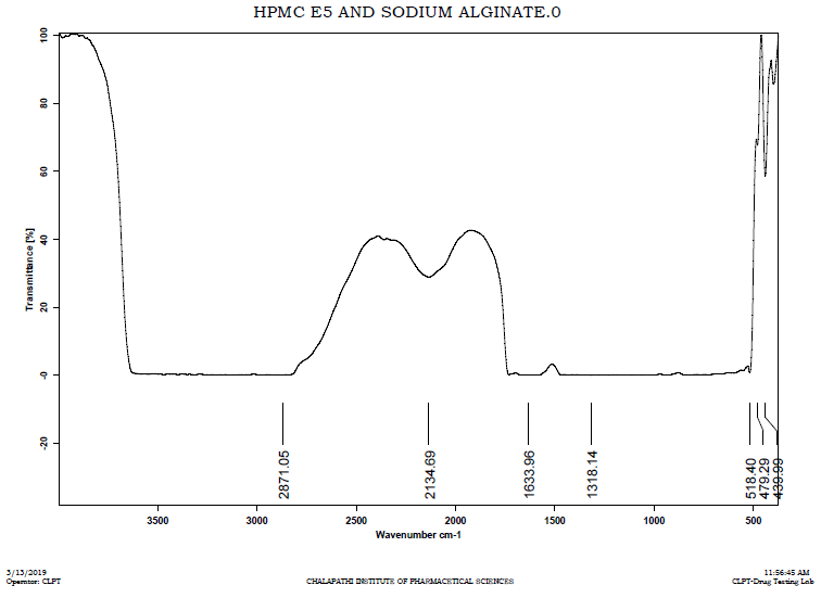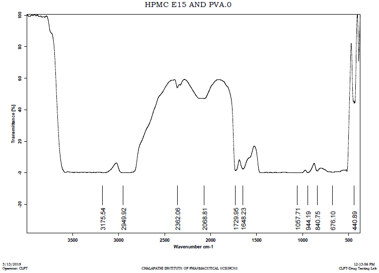 The compatibility of an extract with the polymers was studied by using IR spectroscopic methods. The spectra were shown in fig. 1 and 2. The spectra revealed that formulations having characteristic peaks same as that of the pure extract. It indicated that there was no interaction between drugs and excipients.