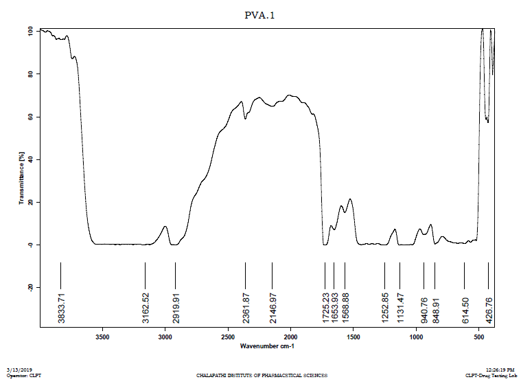 The morphological properties such as homogenous nature of films, colour, transparency and surface texture were observed visually. All the formulations were stored at room temperature 25±30 °C in air-tight containers.