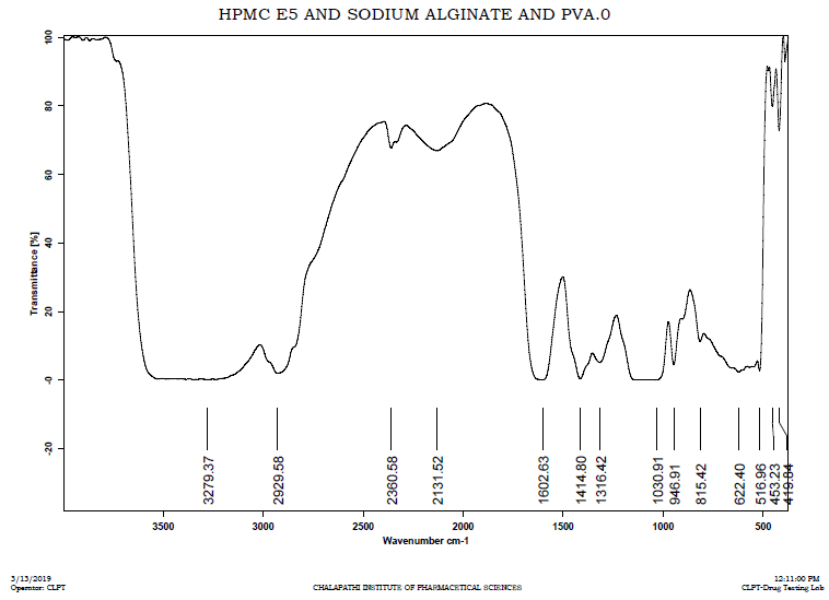 Leaves of the plant Eclipta Prostrate were collected directly from the plant in and around Guntur, Andhra Pradesh, India from March to August. The plant was authenticated as Eclipta Prostrate by Dr. Ammani (Voucher specimen V 2762), Head, Department of Botany, Acharya Nagarjuna University, Guntur, Andhra Pradesh, India. The plant was deposited at the biology department of the laboratory. HPMC E15, HPMC, PVA were procured from Merck Labs, Mumbai. Sodium alginate, propylene glycol, sodium starch glycolate was from Fisher Scientific, Mumbai. Sugar was purchased from the local market. All ingredients were of pure and analytical grade.