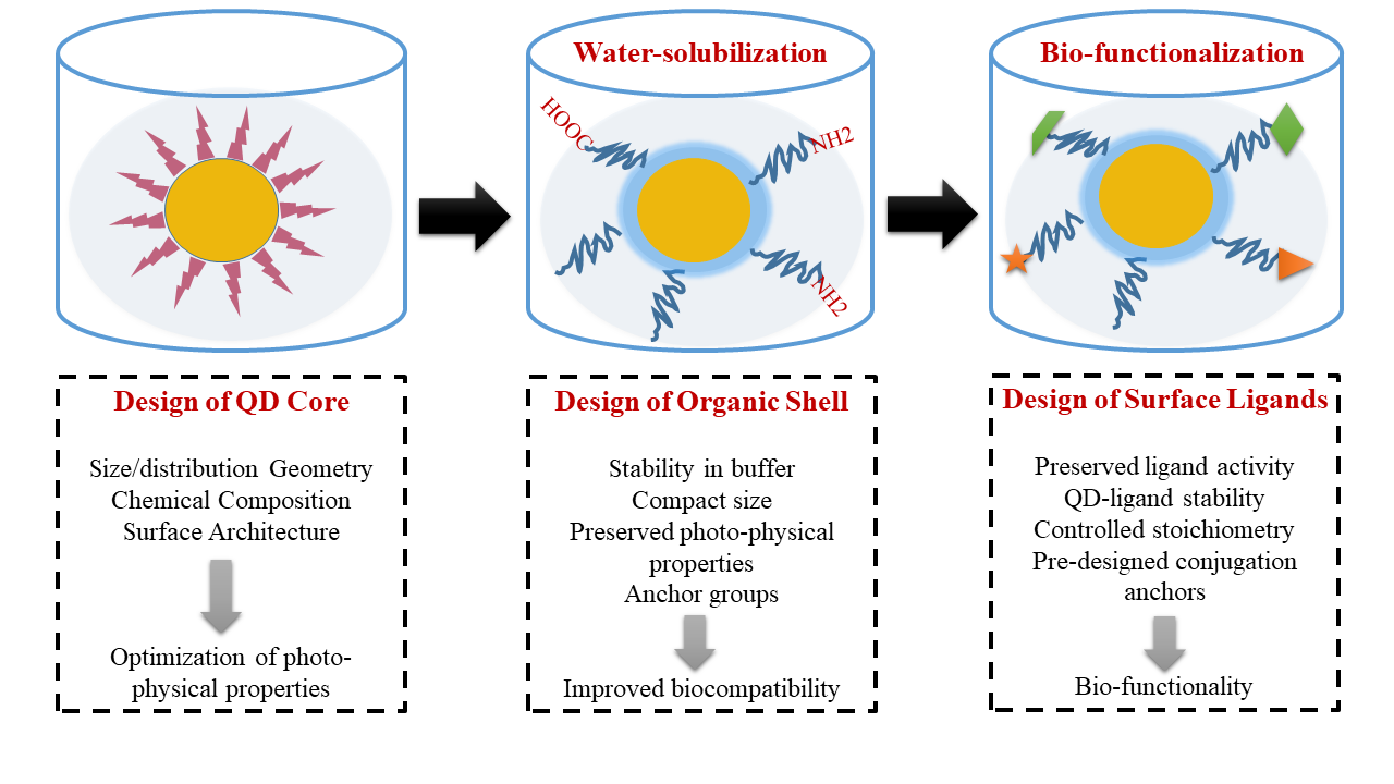 Fig. 4: The steps and design criteria used in QDs probes manufacturing