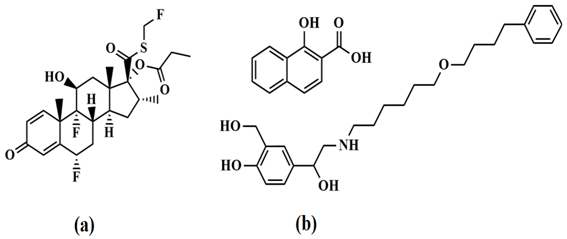 Fig. 1: Chemical structure of fluticasone propionate (a) and salmeterol Xinafoate (b)