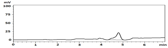 The two medications of a concentration of 66.67 µg/ml were extracted from spiked human plasma and injected into the HPLC with a UV-Vis detector. Retention times of (6.3 and 1.9 min) were detected for FP and SX, respectively as shown in (fig. 6b).