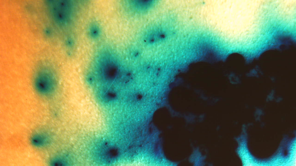 Emulsion Type. The test involves sprinkling water-soluble dyes (methylene blue) on the nanoemulsion surface and is followed by observation under an optical microscope using a 1 x 0.7 magnification. The oil in water (o/w) nanoemulsion will dissolve and diffuse the methylene blue into the whole water region evenly. Meanwhile, in the water and oil (w/o) nanoemulsion, methylene blue will cluster on its surface [1].