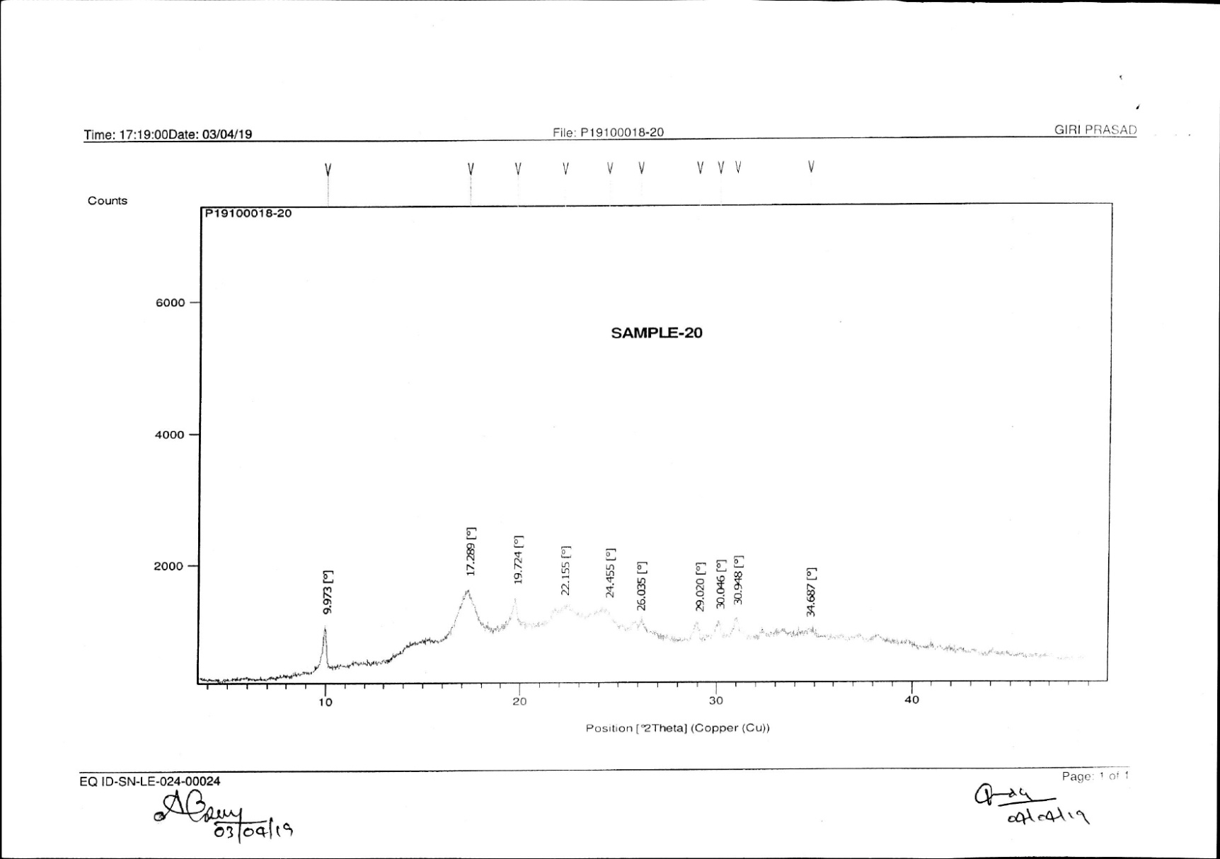 Fig. 3: X-ray diffraction pattern of starch glycolate
