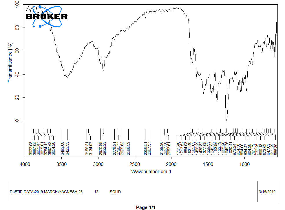 FTIR spectra of Glipizide and their mixtures (1: 1) with starch glycolate were recorded on a Perkin Elmer, IR Spectrophotometer model: Spectrum RXI, using KBr disc as reference [15].
