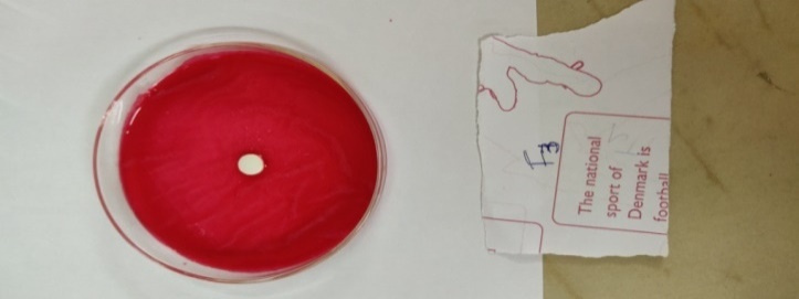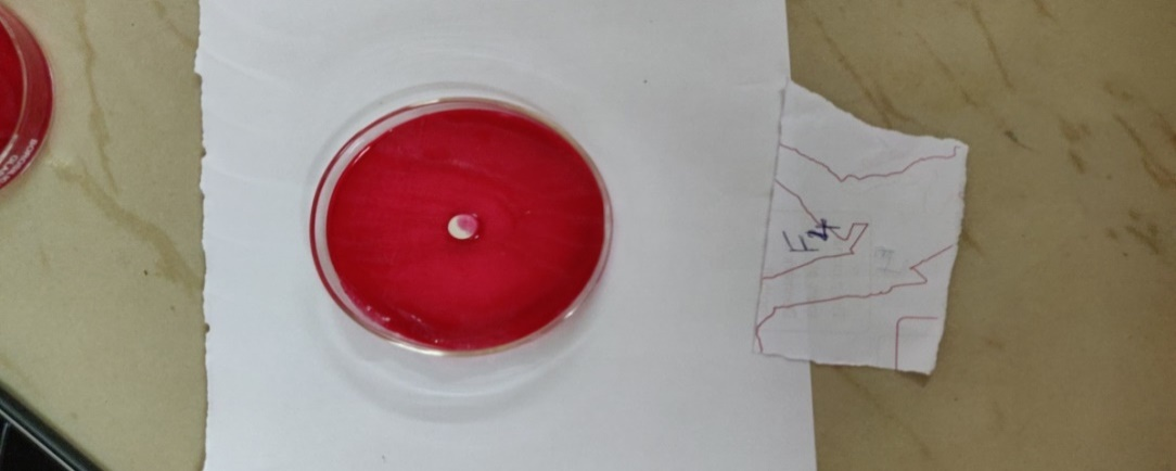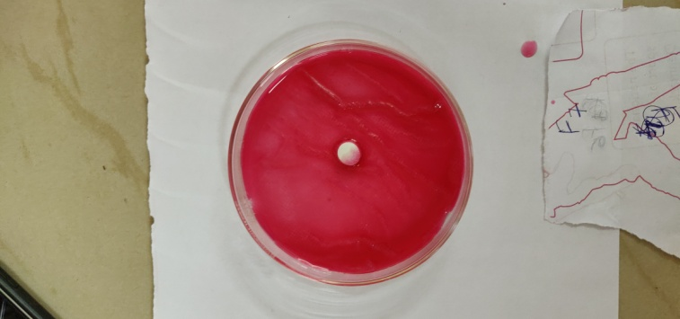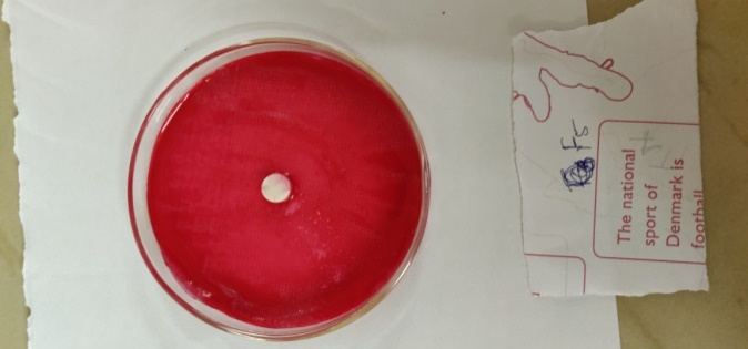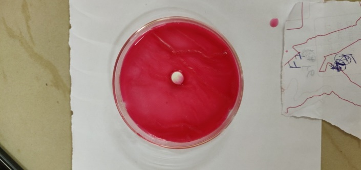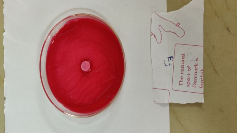 To 1 mg of Starch glycolate, 2m of ethanol and 1 ml of 0.1 ml NaOH were added. To this, a phenolphthalein indicator was added [12]. The colour change was observed.