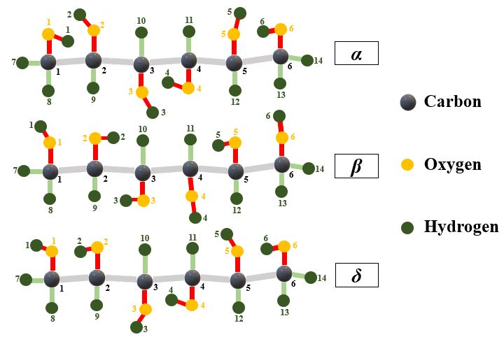 Fig. 5: The structures of polymorphs of mannitol (α, β, and δ)