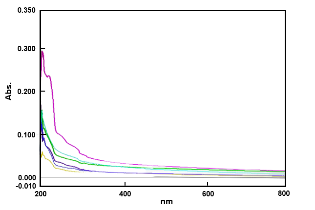 Fig. 6: Overlay UV spectra of mannitol (1,5,10,20,50,100 µg/ml
