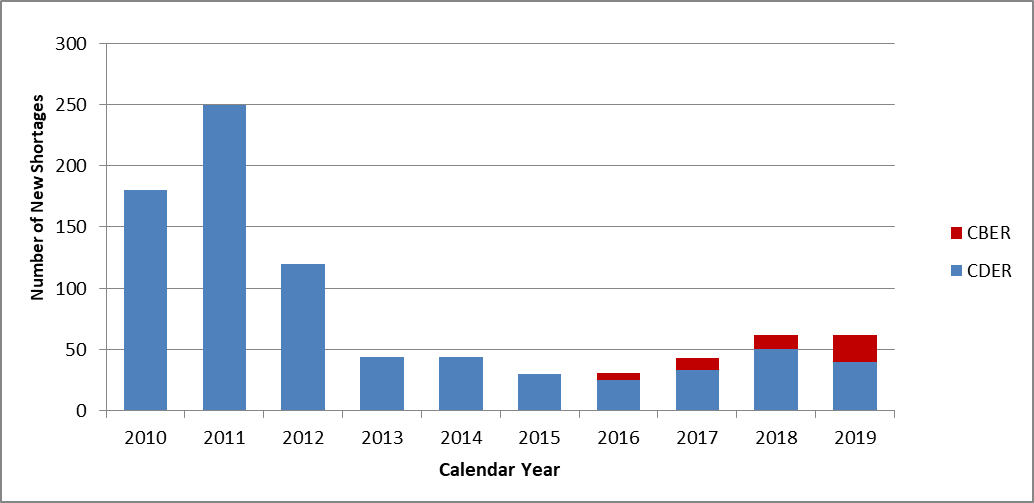 The following fig. depicts the number of new drug shortages identified by the FDA from 2010 to December 31st, 2019 (fig. 3).