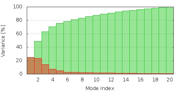 Fig. 6: Variance (individual (red) and cumulative (green) variances)