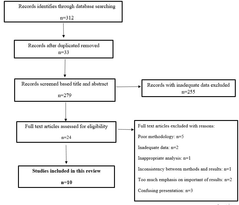 The studies with inadequate information, abstracts submitted in congresses without full texts, failure to match methods with results, and the incorrect interpretation of the results was excluded from the current study.