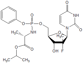 Sofosbuvir, (S)-Isopropyl 2-((S)-(((2R,3R,4R,5R)-5-(2,4-dioxo-3,4-dihydropyrimidin 1(2H)-yl)-4-fluoro-3-hydroxy-4-methyltetra-hydrofuran-2-yl)methoxy) (phenoxy) phosphorylamino) propanoate (SOF) (fig. 1). It is a prodrug nucleotide analog used for the treatment of chronic hepatitis C, genotypes 1, 2, 3, 4, 5, and 6, usually in combination with other medications depending on the specific genotype. Sofosbuvir, is a medication used in combination with other medications for the treatment of hepatitis C [1, 2].