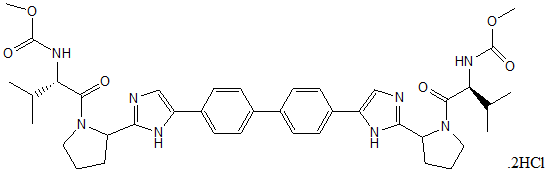 Daclatasvir dihydrochloride (DAC) is methyl [(2S)-1-{(2S)-2-[4-(4-{2-[(2S)-1-{(2S)-2-[(methoxy carbonyl)amino]-3-methyl butanoyl}-2-pyrrolidinyl]-1H-imidazol-4-yl}-4-biphenyl yl)-1H-imidazol-2-yl]-1-pyrrolidinyl}-3-methyl-1-oxo-2-butanyl] carbamate dihydrochloride (fig. 1). DAC is an antiviral drug used to treat chronic (long-lasting) hepatitis C, a viral infection of the liver. DAC is an antiviral and acts directly against the hepatitis C virus [3].