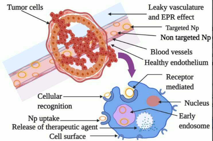 Fig. 2: Schematic representation of passive and active targeting approaches. EPR, enhanced permeability and retention; np, nanoparticle [39]