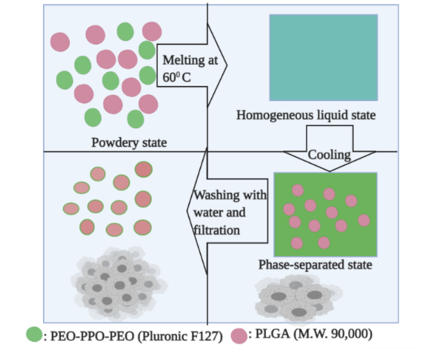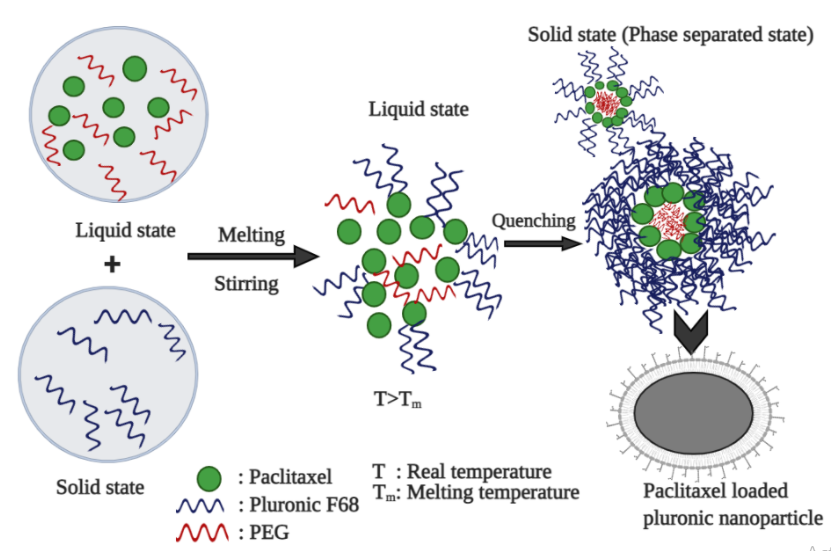 Lee KE, Kim BK, Yuk SH. Biodegradable polymeric nanospheres formed by the temperature-induced phase transition in a mixture of poly (lactide-co-glycolide) and poly (ethylene oxide)− poly (propylene oxide)− poly (ethylene oxide) triblock copolymer. Biomacromolecules. 2002;3(5):1115-9. doi: 10.1021/bm020066h, PMID 12217061.