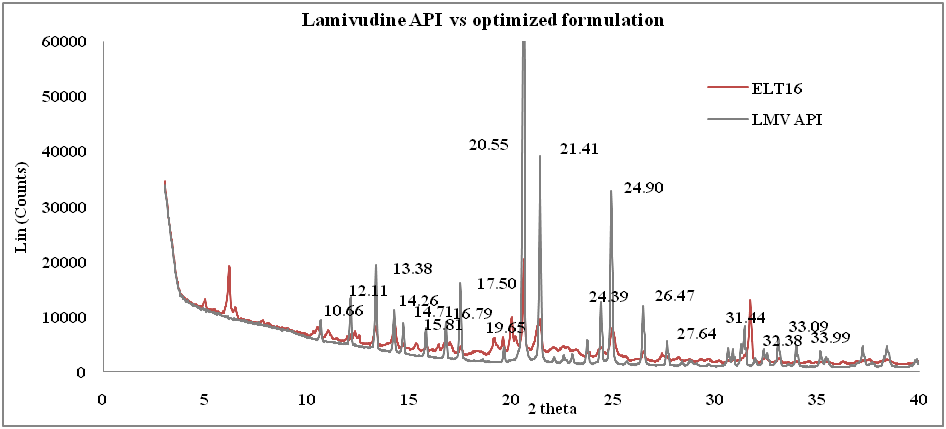 Fig. 8: XRD profile of active substance and finished product of optimized formulation (lamivudine)