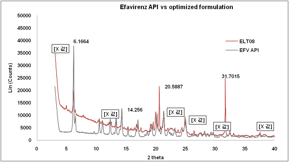 The polymorphic study was carried out for the three active pharmaceutical ingredients (APIs) such as efavirenz, lamivudine, and tenofovir and confirmed that these drug substances comply Form-1 (efavirenz and tenofovir) and Form-II for lamivudine by considering the 2-theta values. Further, these polymorphic forms were reconfirmed from the finished drug product as per fig. 5-10, and which indicates that the manufacturing process has no impact on the polymorphic character of the three-drug substances. It can also conclude that there is no interaction between active substances for the bi-layer formulation.
