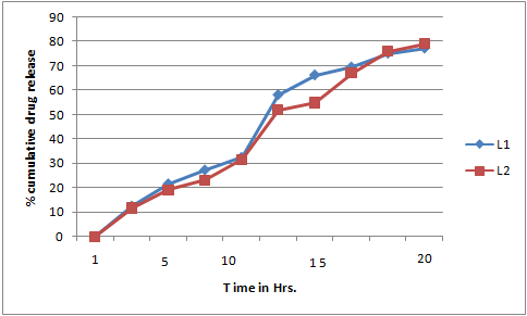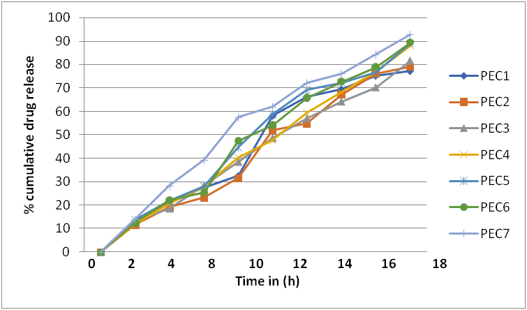 The in vitro discharge study was finished with the semi-permeable film using Franz dissemination cell [36]. The chamber contains two chambers, the supplier and the receptor compartment. The supplier compartment was open at the top and was introduced to the air. The temperature was kept up at 37±0.5 °C and the receptor compartment was outfitted with a testing port. The scattering medium used was phosphate uphold (pH 7.4).
