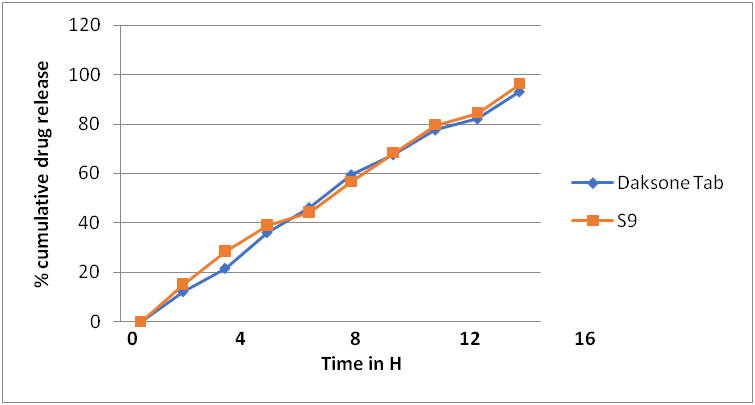 Fig. 10: Comparative drug release of batch S9 and extended-release tablet