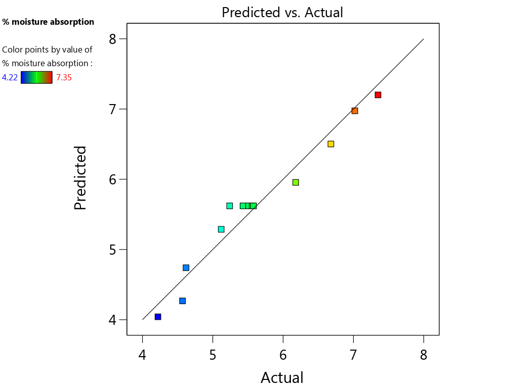 Fig. 3: Predicted Vs actual values for % moisture absorption