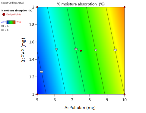 Fig. 4: Counter plot showing the effect of variables on % moisture absorption