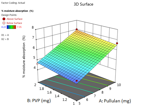 Fig. 5: Response surface plot showing the effect of variables on % moisture absorption